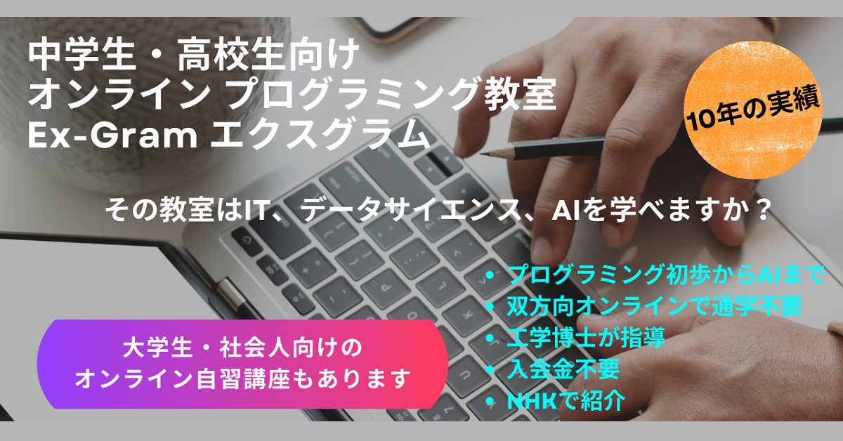中学生・高校生向けプログラミング教室Ex-Gramは第29期生(2026年2月スタート 原則第1、3日曜日 13:00~15:00)の募集にあたり2025年12月~2026年01月の無料プログラミング体験の受付を開始しました。